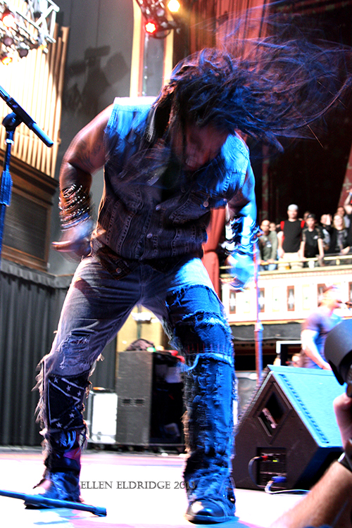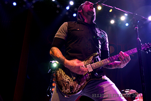 The energy exuded by fans warmed the Tabernacle like the heat kicking on during a chilly evening, after the break between Coal Chamber and the final act of the evening. Witherspoon called out to fans, asking if they could feel the energy; the band’s decision to open with “Decay” off the March 26, 2013, release, Black Out the Sun, drove an energetic feeling. Despite a few grumblings about Sevendust’s recent release taking a step backward toward a more mellow sound, “Decay” crunched under foot and revved up the crowd.